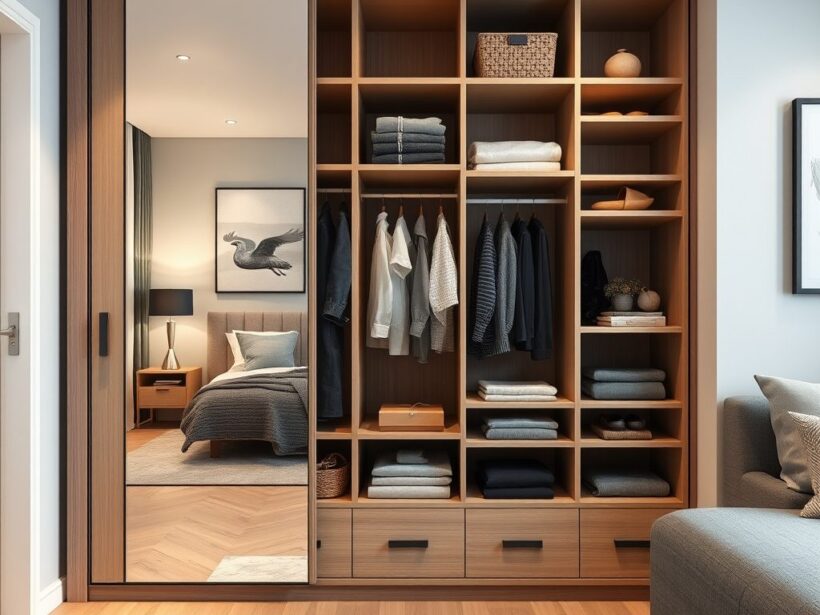 Łóżko chowane w szafie jako klucz do funkcjonalnego strefowania kawalerki i oszczędności przestrzeni