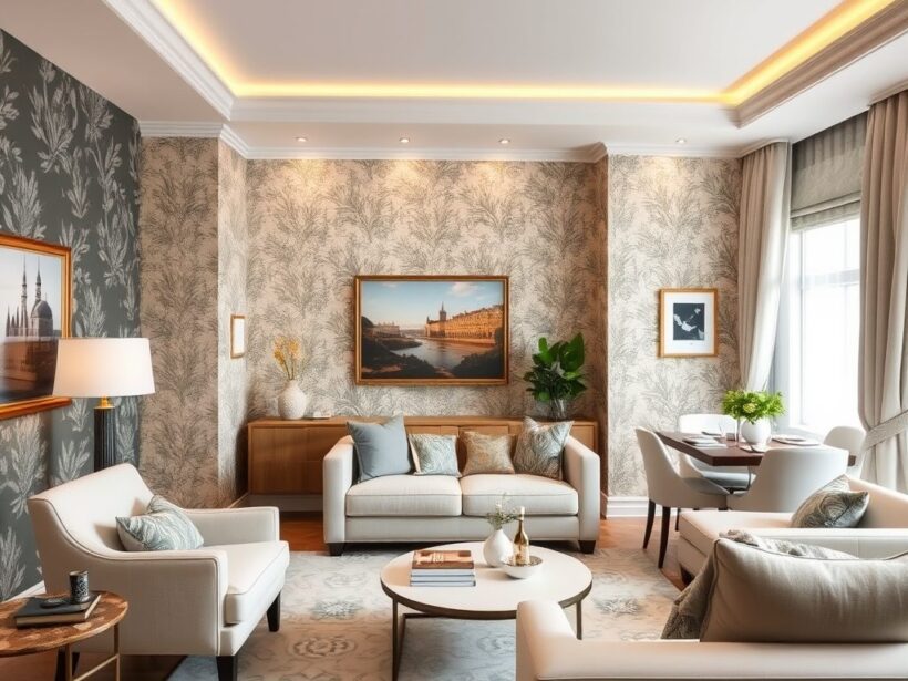 Tapeta jako subtelny sposób na wyodrębnienie funkcjonalnych stref w salonie bez chaosu aranżacji